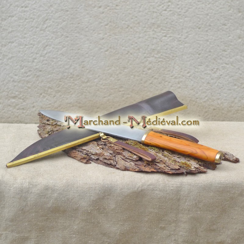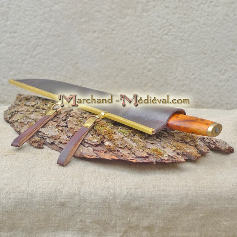 Seax with a beautiful leather sheath embellished with a bracket of brass riveted and with 2 loops allowing you to wear it on your belt.