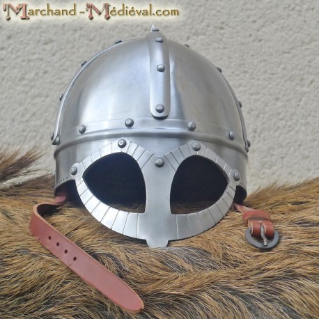 The helmet is made of 2mm thick steel sheet, it is thus very solid, so you will be able to take blows during your battle reenactment !