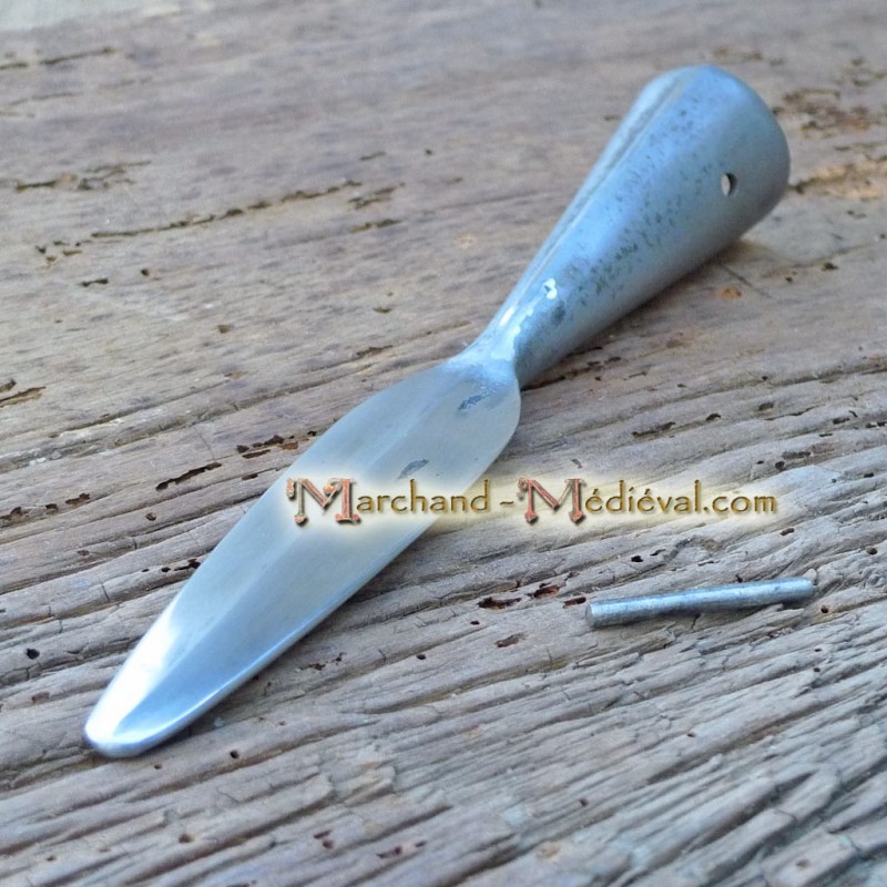 La punta de lanza se suministra con una varilla de remachado, para pasar a través del mango de madera y martillar para completar el montaje.