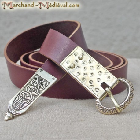 La boucle est reliée a une plaquette de ceinture en alliage de cuivre ouvragé et rivetée par 2 rivets.