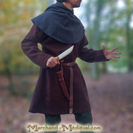 Accessoire indispensable au confort du médiéviste, ce chaperon en laine vous protègera du froid, du vent, de la pluie. et aussi du soleil.