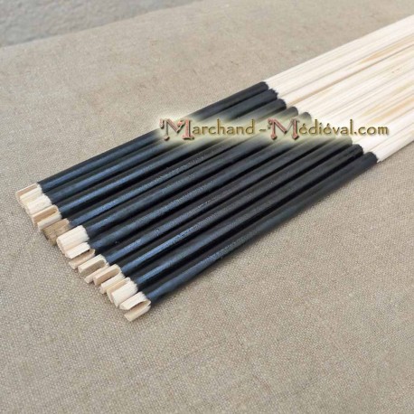 Ces fûts de flèches sont préparés pour la reconstitution de flèche médiéval et vous permettent grace à leurs encoches taillées dans le fût, de tirer des flèches historique.