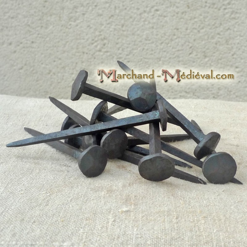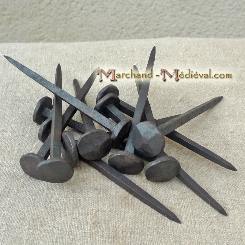 Ce sont des clous forgés à la main, ils sont donc irréguliers dans leurs formes et dans leurs cotes.